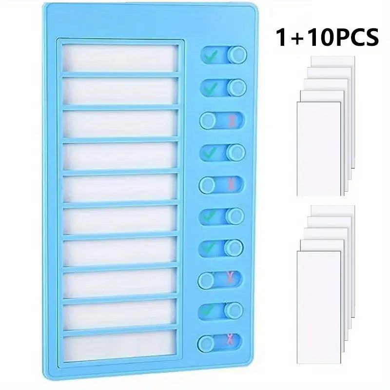 The task master allows you to set tasks for your child that they can independently complete by viewing the task and then sliding over the tick button to signal the task is complete.