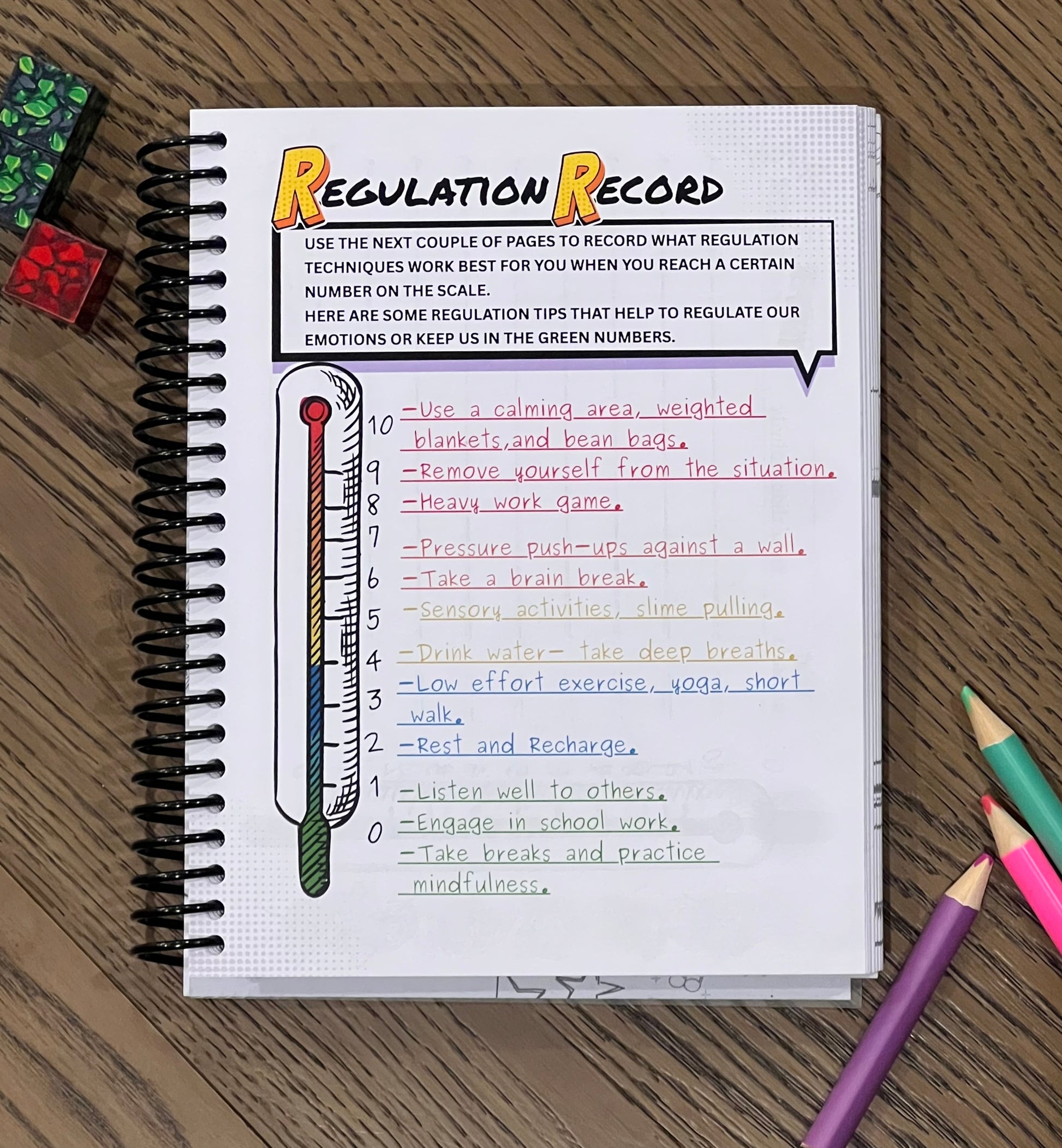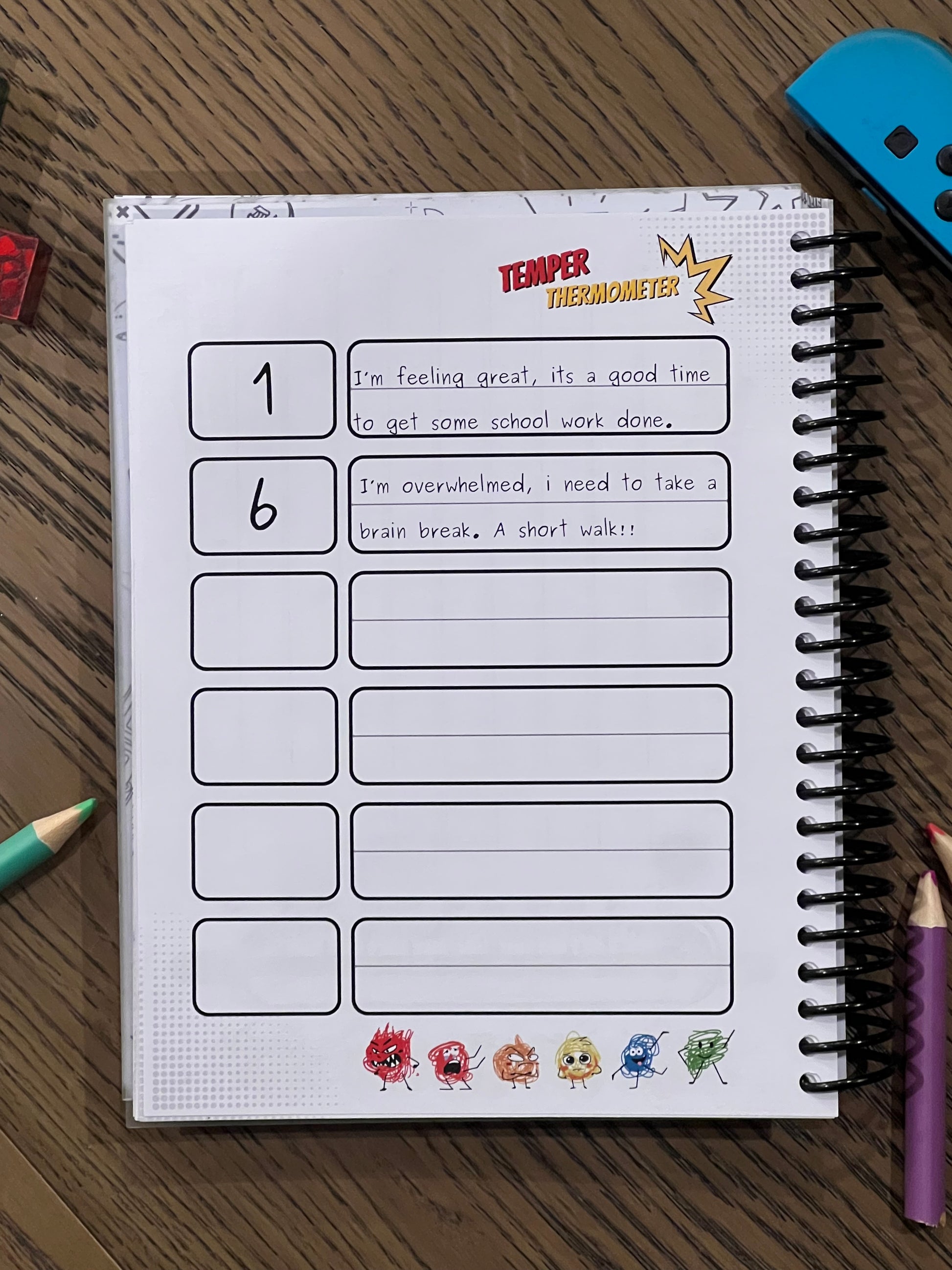 At the beginning of the diary is a Temper Thermometer, where students can record: