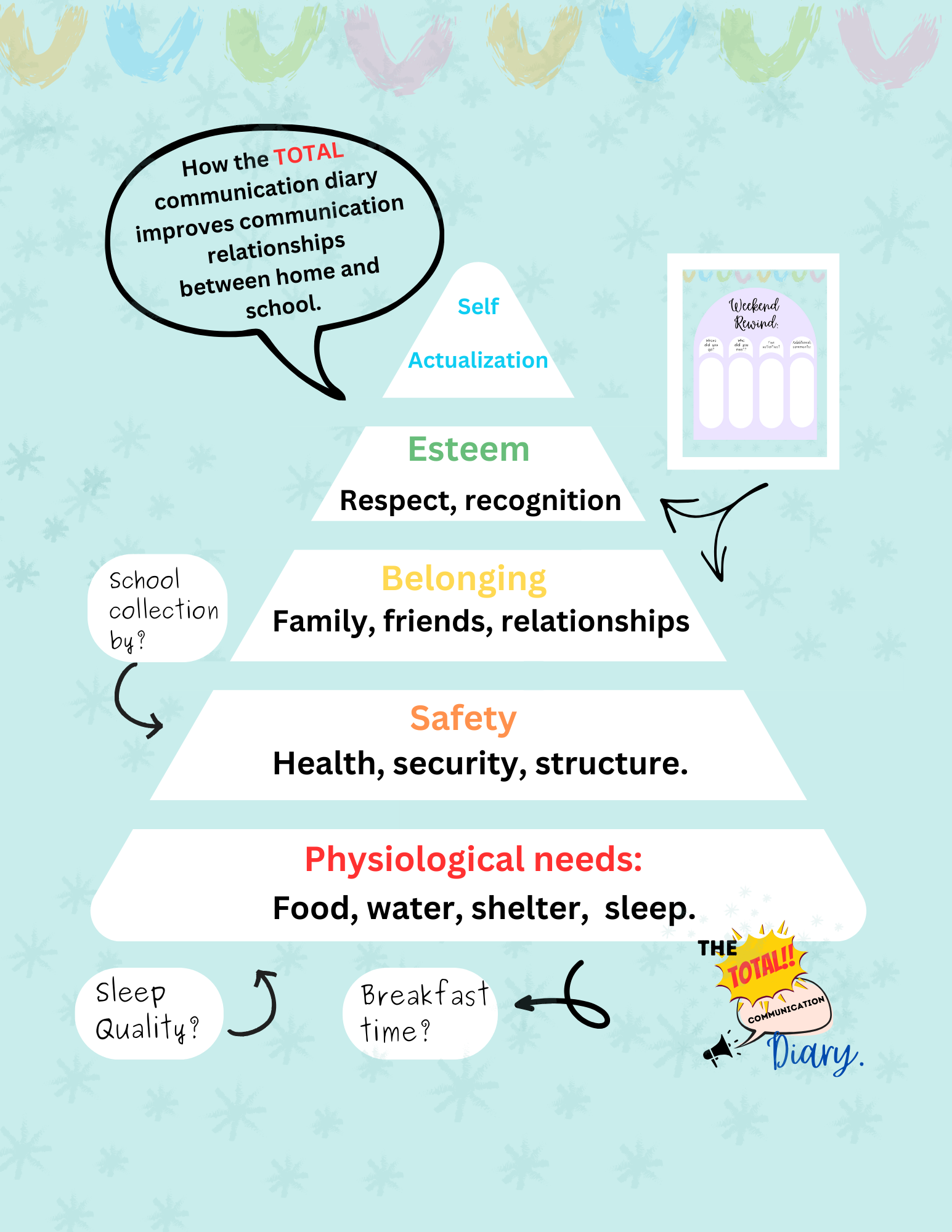 Not every parent or every teacher has the oppertunity to meet eachother in the mornings to relay this information, that is why 'The Total Communication Diary' was created.