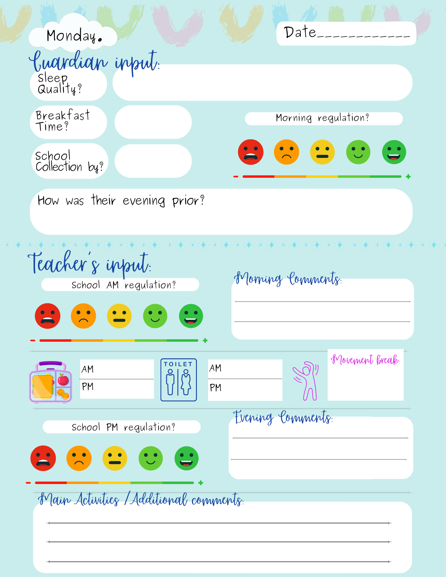 Recieving information from home about the children is just as important, it allows school staff to make changes to the childs day as needed.